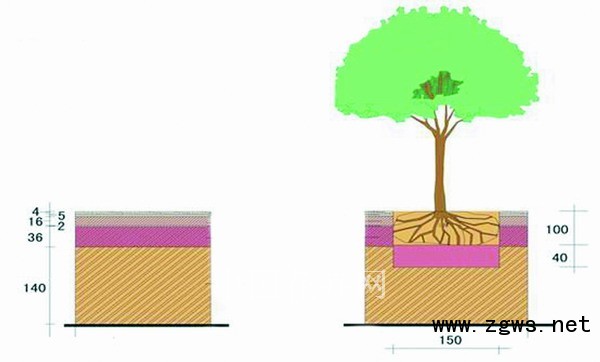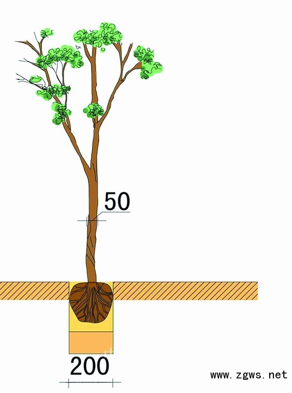 一些人将胸径30厘米以上的大树栽植于内径2米左右见方、深1.5米左右的树池中,只会加速树木的死亡。